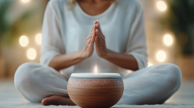Woman meditating for yoga retreat promotion