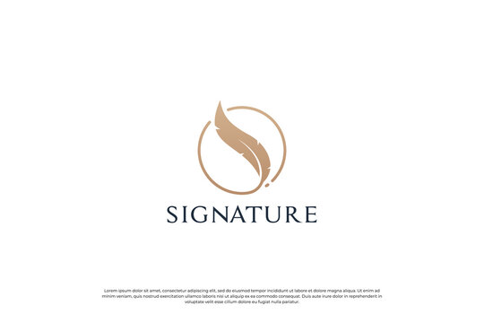 Quill icon for writer or law notary office, feather pen signature vector symbol. Quill or feather pen sign with ink line for lawyer firm or legal attorney, book author and publishing house emblem