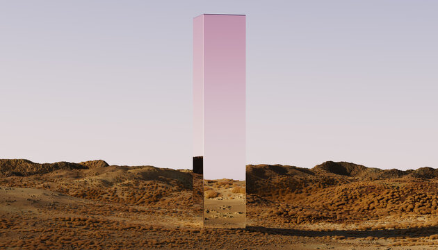 Mysterious Mirror Monolith in a Desert Landscape