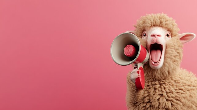 Funny rabbit wearing sunglasses shouting through a megaphone announcing something important on a teal background