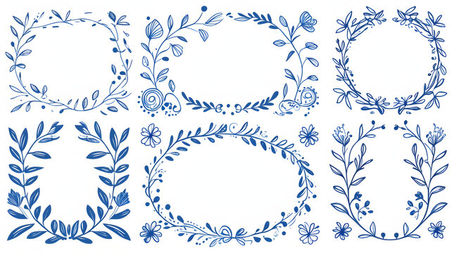 Set of Merry Christmas whimsical hand-drawn blue orange green color frames with wavy squiggle curly ribbons in trendy, vintage styles. Perfect for quirky holiday, Christmas invitation, greeting card