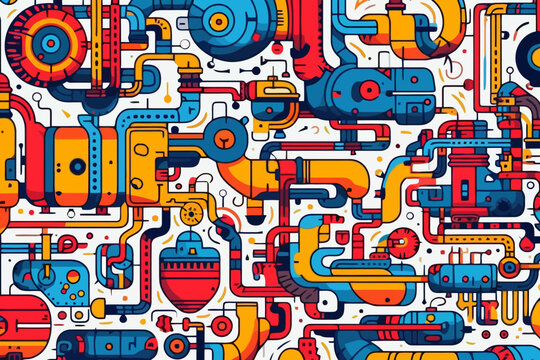 Industrial style typography quirky doodle pattern, wallpaper, background, cartoon, vector, whimsical Illustration