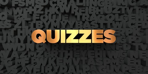 Quizzes - Gold text on black background - 3D rendered royalty free stock picture. This image can be used for an online website banner ad or a print postcard.
