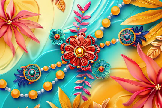 Colorful 3D Rakhi for Raksha Bandhan Celebration Stock Illustration