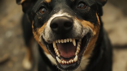 Fierce dog showcasing aggressive demeanor with bared teeth emphasizing the importance of rabies prevention and treatment for stray animals