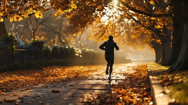 strong muscular man athlete running overtaking runners in competitive race competition on sprinting on urban city road at sunrise