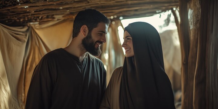 Yaqoub  stands with Rachel, a loving couple from the Bible