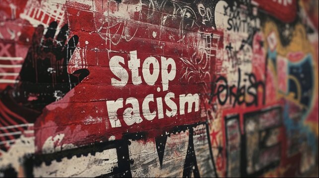 graffiti wall photo with just the words stop racism