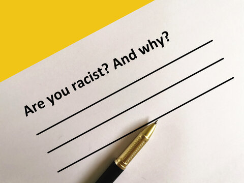 One person is answering question about racism. He is thinking if he is racist and the reason of his answer.