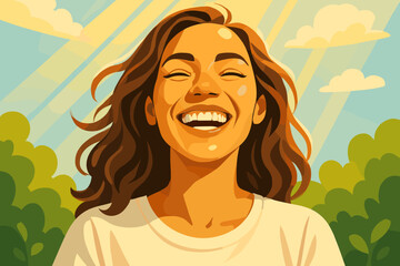 Radiant Smiling Portrait. Joyful vector illustration portrait of a young woman with a radiant smile under bright sunlight, vibrant
