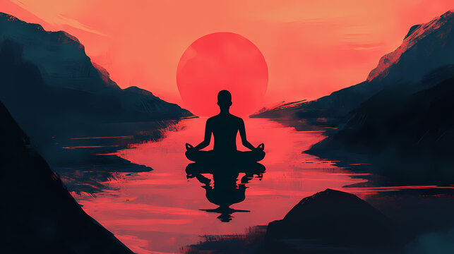 Mindful serenity silhouette of person in peaceful meditation pose radiating inner calm and spiritual balance minimalist illustration. Serenity. Illustration