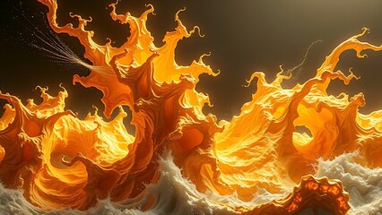 A gravity-defying golden fractal structure engulfed in chaotic energy waves, radiating molten brilliance.