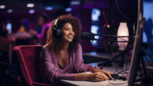 Modern radio station studio online live on air broadcasting storytelling news media Generative AI
