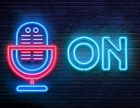 vector set realistic isolated neon signs air logo template decoration wall background concept podcasts radio