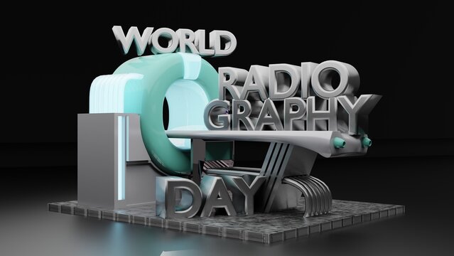Medical congratulatory banner with flowers and X-rays on white with text International Radiology Day.