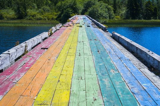 Rainbow bridge leading to the sky with paw prints along the path. picture
