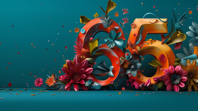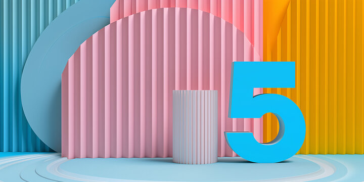 Zahl 5 in Regenbogenfarben für Geburtstag und Jubiläum als Druckvorlage für Postkarten