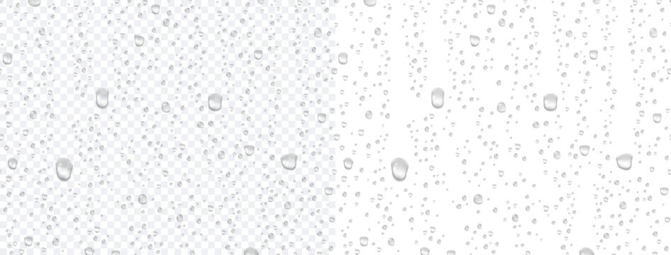 Rain water drop bubble vector background. Condensation water drops on black glass background. Abstract wet texture, rain water drop pattern. Vector illustration