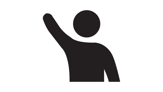 Raised hand showing palm in stop signal or volunteering gesture, isolated on plain white background caucasian adult arm ready with neutral expression reaching for communication or to ask question