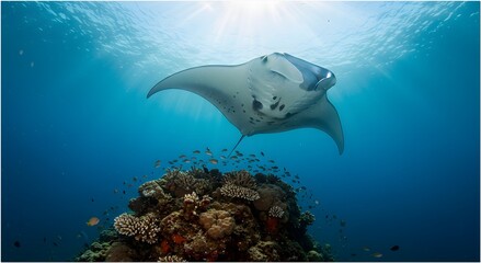 Oceanic Majesty Giant Manta Ray Glides Over a Cleaning Station in Misool Raja Ampat