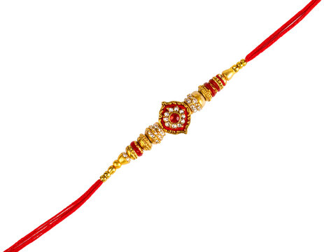 Traditional Rakhi thread with beads and embellishments, isolated PNG – top view, clean, Sibling Festival, rakhi celebration, rakshabandhan