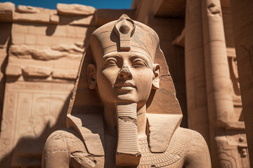 Pharaoh ruler statue illustration, ancient egyptian sculpture, ancient head of state, religious leader monument, ai generated art