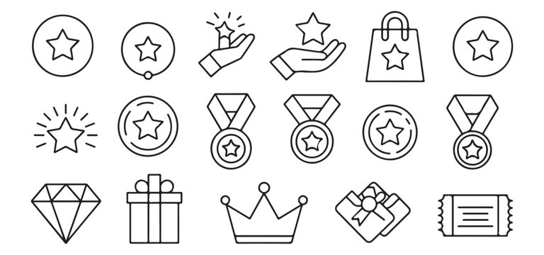 Star rating icons set for reviews and feedback with gold and gray styles