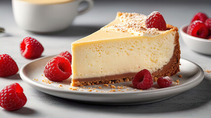 Strawberry and raspberry cheesecake slice, gourmet dessert with fresh fruit toppings