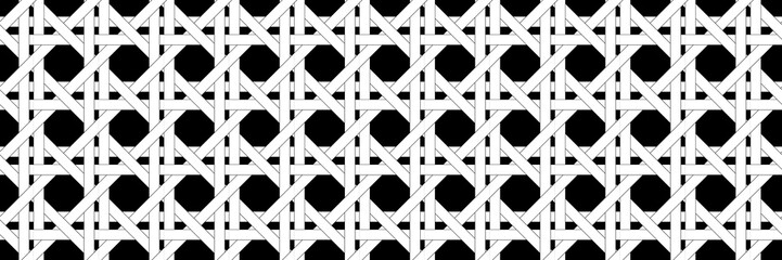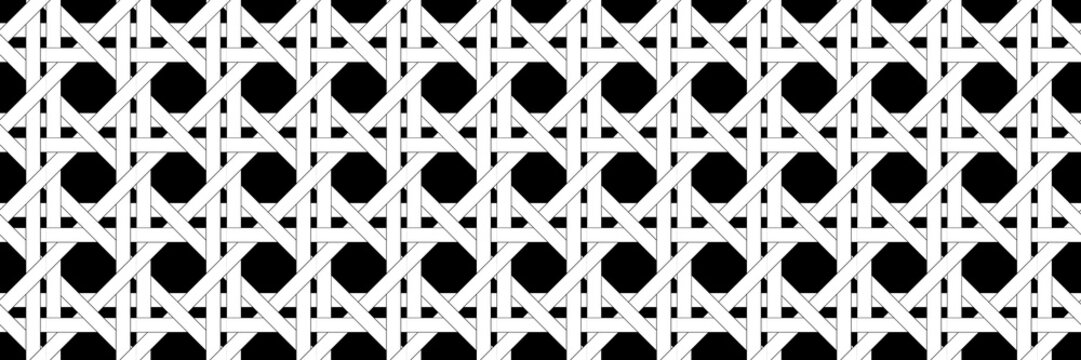 Rattan pattern on black background. Horizontal rattan decoration pattern. Black and white geometric woven pattern.