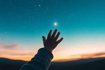 Continuous one line drawing of a hand reaching for stars, representing hope and the pursuit of greatness.