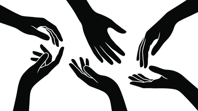 Black hand man helping white person - Different skin color hands united against racism and racial problem - Concept of humane aid between different cultures and religion - friendship between peoples