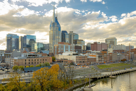 Downtown Nashville city skyline building view. Photo taken in Nashville Tennessee during a cloudy day