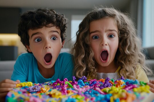 Happy young couple stand in the kitchen during the Christmas period, opening a letter reading pleasant, amazing, positive news. The man and woman received news of a mortgage approval or a lottery win.