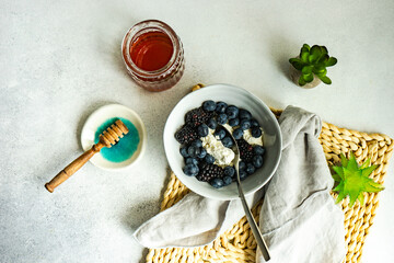 Fresh blueberries and mint promoting healthy eating lifestyle