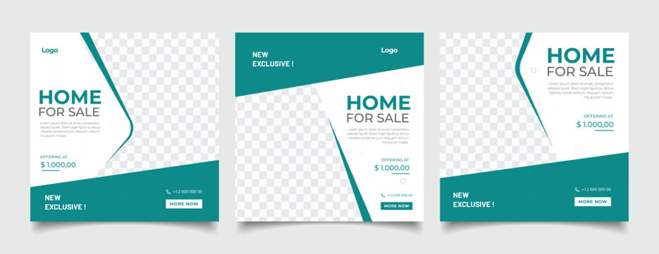 Set of Social media post template design for real estate, home, or other business promotion. Modern square banner with place for the photo. Usable for social media, banner, and website.