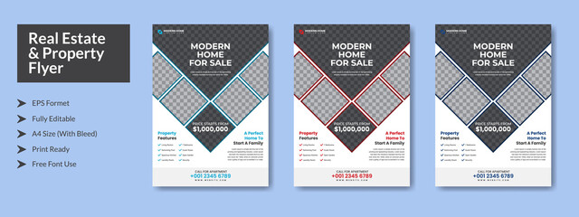 Abstract Real Estate Property Flyer with color variation, A4 with Bleed, Print Ready, EPS formet, Editable.