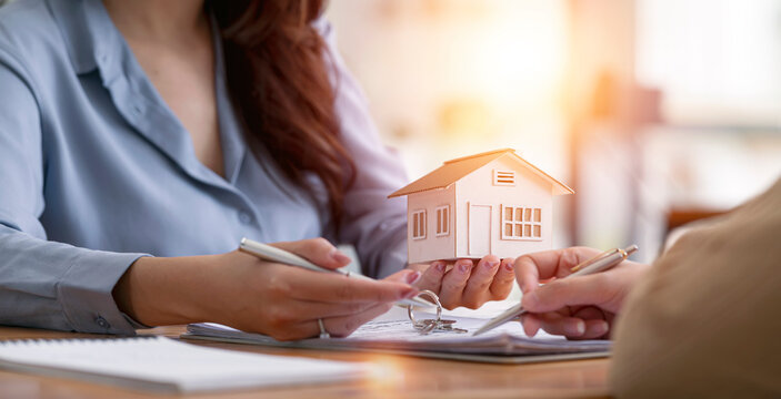 Home and business insurance concept with miniature house model