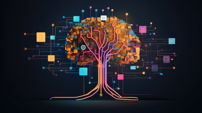 Elegant visual narrative depicting AI reasoning models with refined schematic diagrams and cognitive frameworks that simulate complex decision logic and intelligent inferences in  Photo Stock  Concept