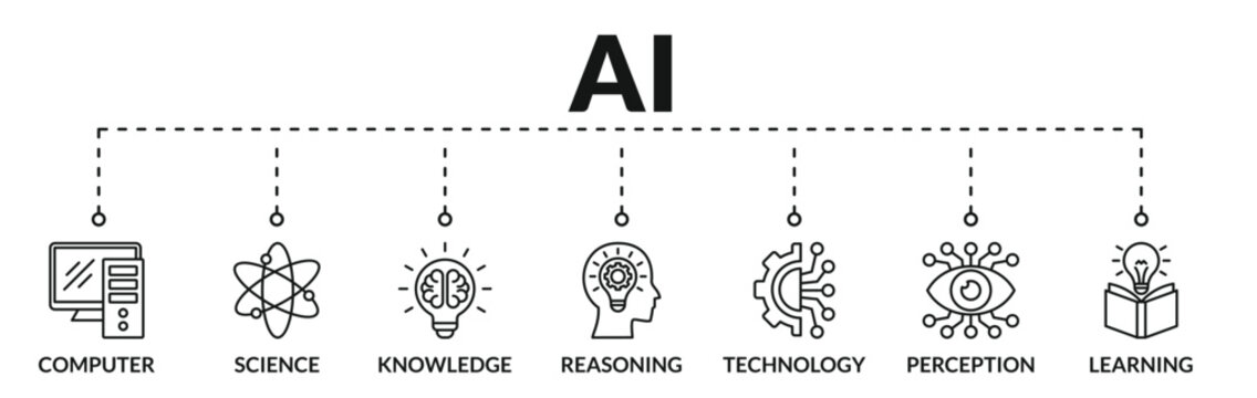 Banner of ai ( Artificial intelligence ) web vector illustration concept with icons of computer, science, knowledge, reasoning, technology, perception, learning