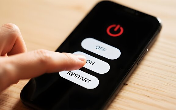 Finger about to press restart button on smartphone screen