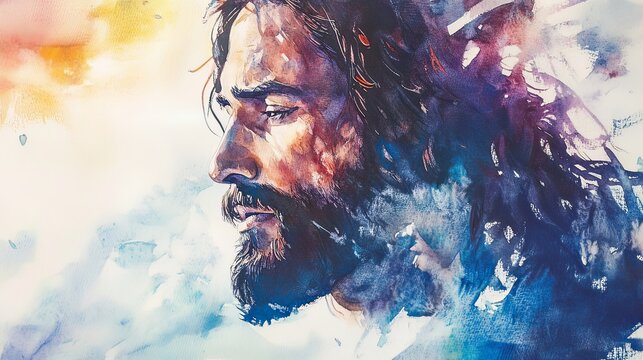 A powerful portrayal of Jesus rebuking a storm, showcasing his intense expression through soft blending of light and shadow with dynamic brushwork
