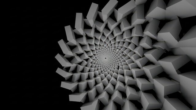 Geometric spiral pattern with cubes on black background