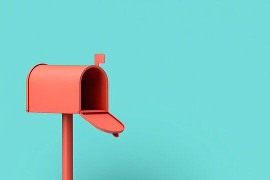 Coral mailbox open against turquoise background image