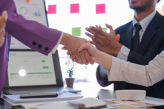 Business, man and staff applause in office for success, employee recognition and good news. Male person, team and clapping hands for winning praise, congratulations and thank you of company promotion