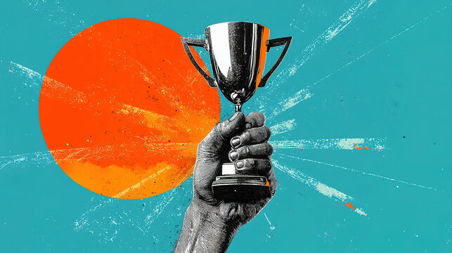 Reaching for excellence a triumphant hand gesture holding five golden star awards, symbolizing success and talent recognition