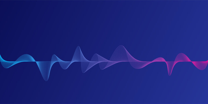 Neon flowing wavy lines on black background. Abstract sound wave design for ai concept, equalizer, audio record, voice assistant. Blue, pink orange gradient curve stripes. Vector wallpaper
