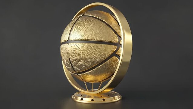 three-dimensionally generated image of a prestigious award cup made of gold-colored material  themed around the sport of