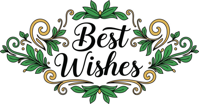 Elegant 'Best Wishes' design with ornamental flourish and lush green foliage