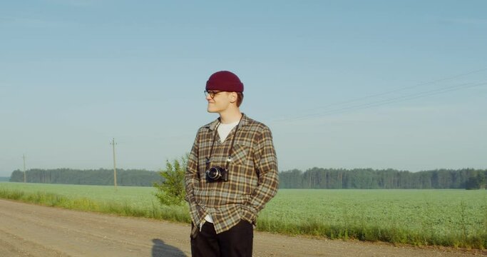Young girl standing on top of mountain and victoriously raising hands up, looking far away - zennism, freedom, adventure concept 4k footage