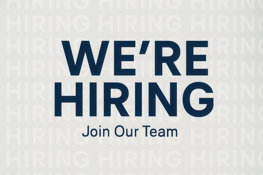 Bold text "We're Hiring" with "Join Our Team" below, set against a repeating background of the word "Hiring," ideal for employment and recruitment advertisements.
